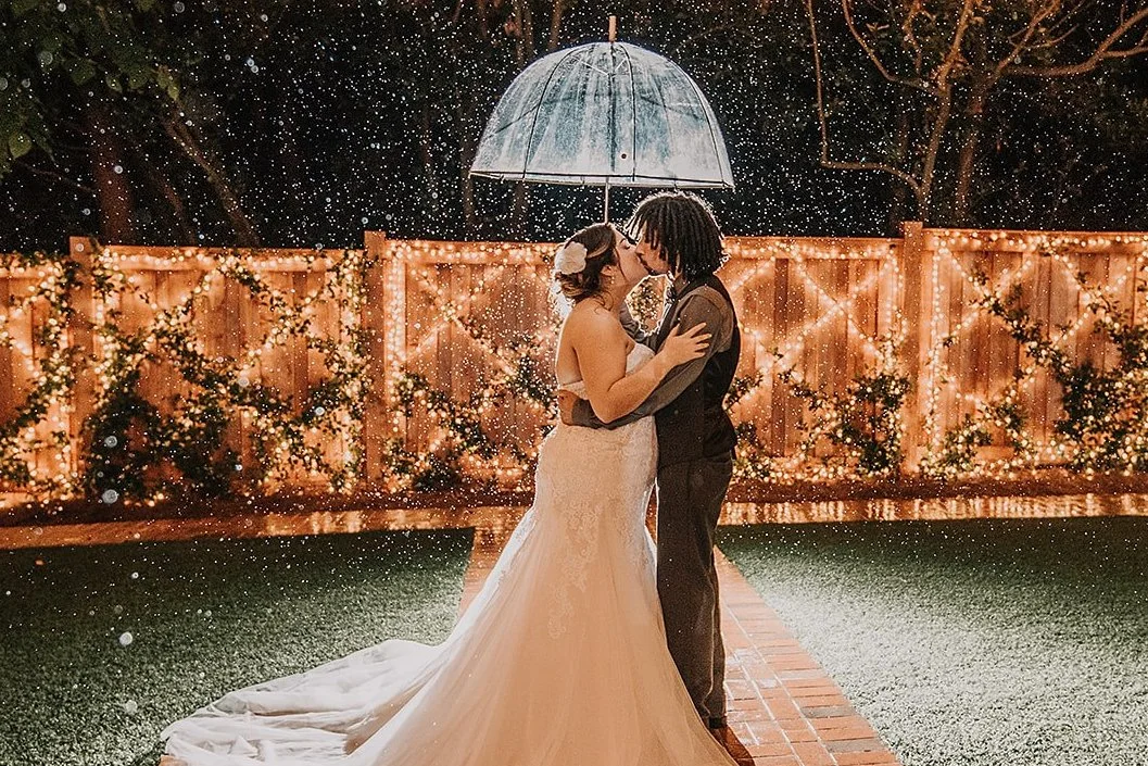Outside, the secluded courtyard is brimming with luscious greenery. A beautiful ramada is centered in the space, creating a grounded focal point for your “I Do’s”, surrounded by custom blue stone pathways and cedar fencing. The scent of jasmine and effervescent lighting created by the hanging tivoli’s, provides the perfect amount of ambiance, adding warmth and anticipation to the environment. The courtyard accommodates up to 300 guests, while the covered pavilion affords even more space options, including additional ceremony, cocktail hour, or reception accommodations. Planning a winter event? No Problem. The custom-fit pavilion sidewalls are available for use in the winter months. When complete with one of our custom bars, it’s a truly charming addition affording clients lots of flexibility in planning their special day.